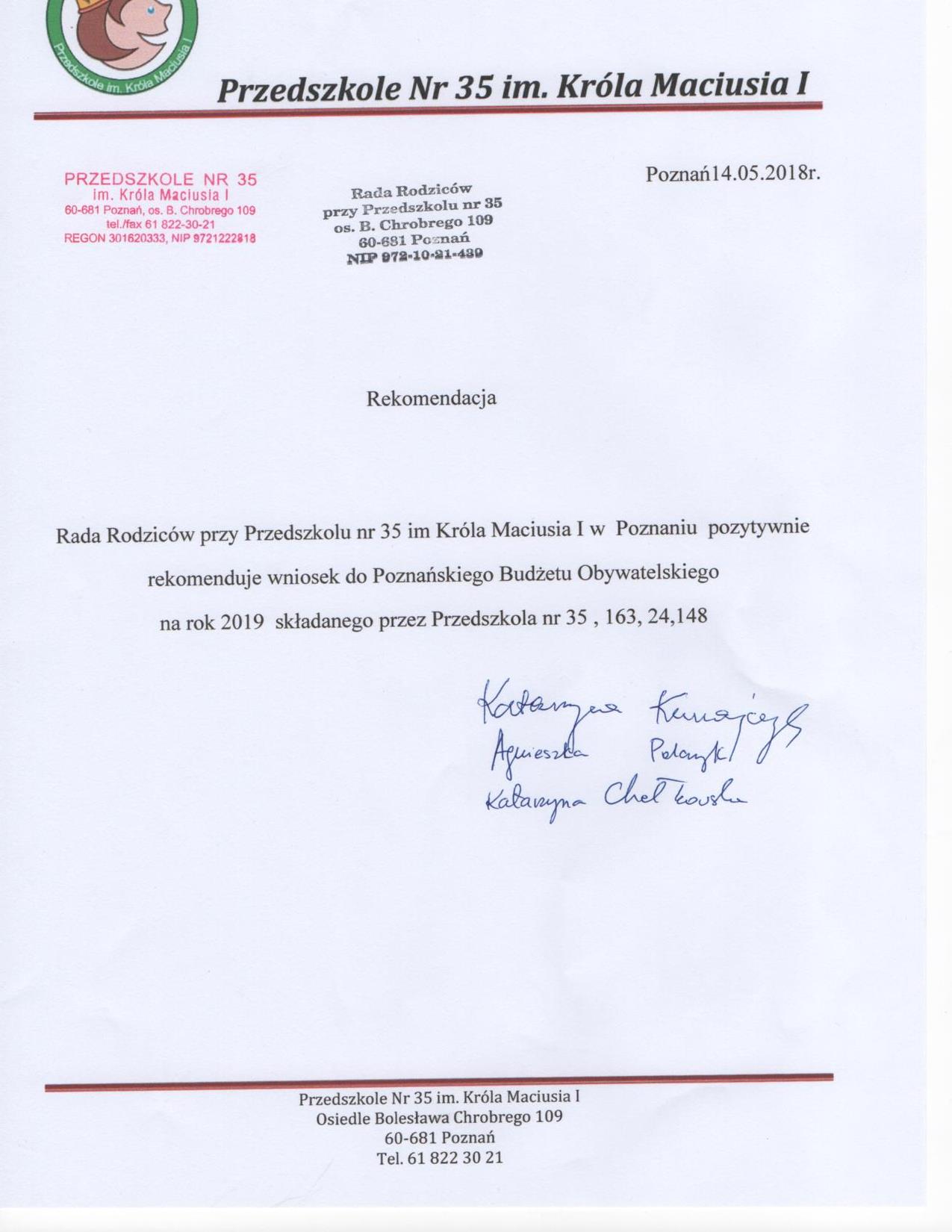 Projekt jest rekomendowany do realizacji przez Jednostkę
