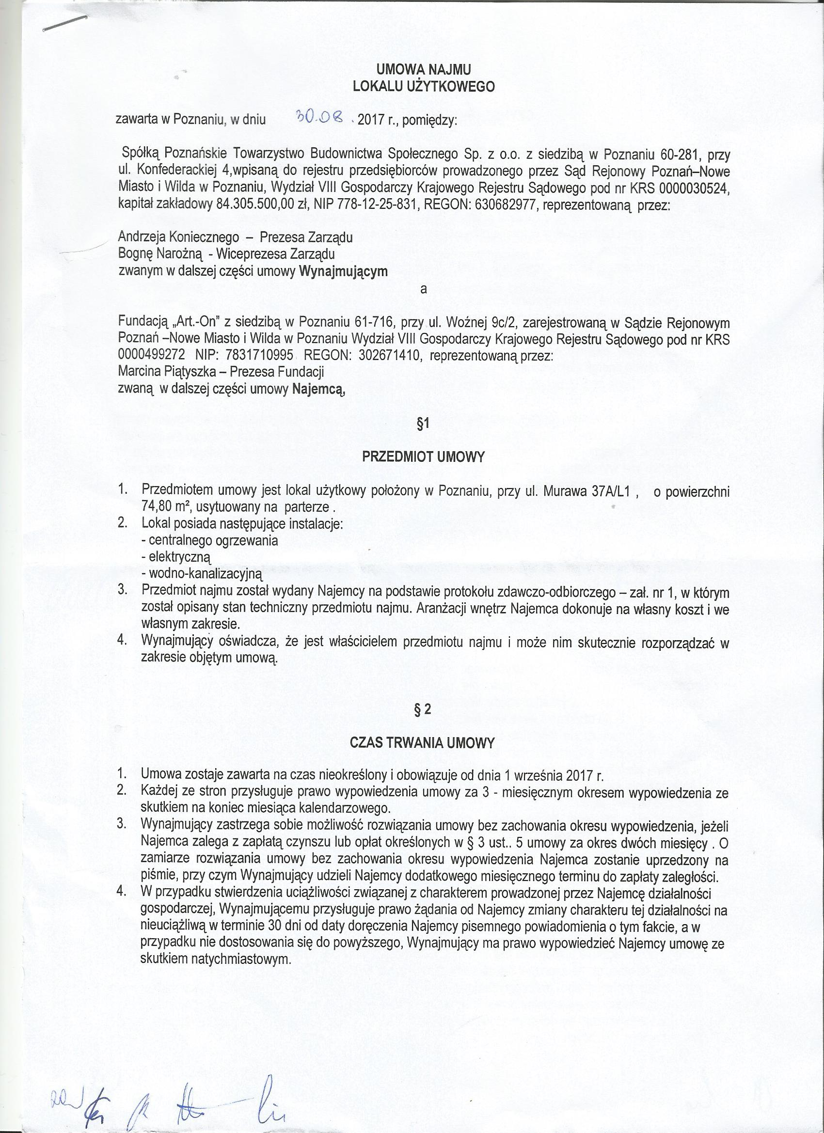 umowa najmu lokalu użytkowego z PTBS cz.1 umowa z PTBS str 1.jpg