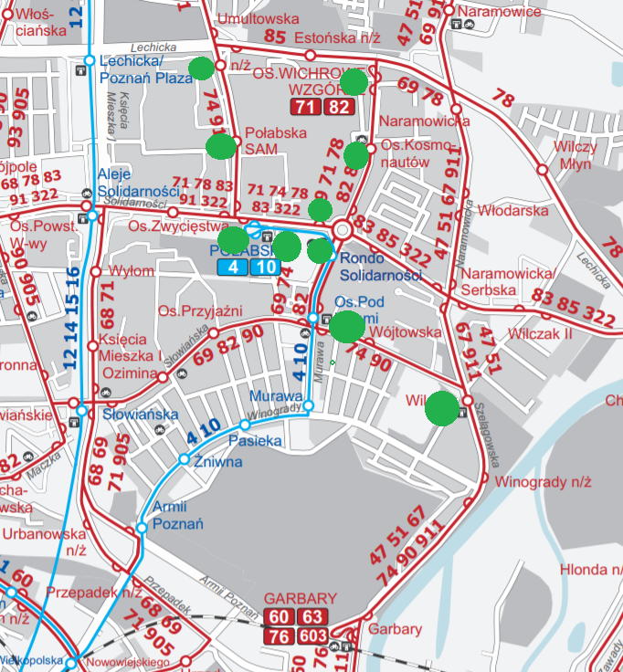 Uzasadnienie: Wskazana lokalizacja znajduje się w zasobie nieruchomości Miasta Poznania. Właściwym do zaopiniowania jest Wydział Transportu i Zieleni.